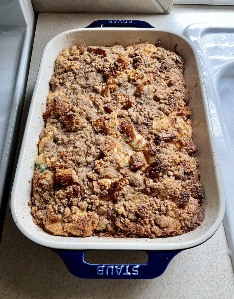 Top with streusel: Skip the cinnamon sugar and top your French toast casserole with a crisp streusel topping instead.