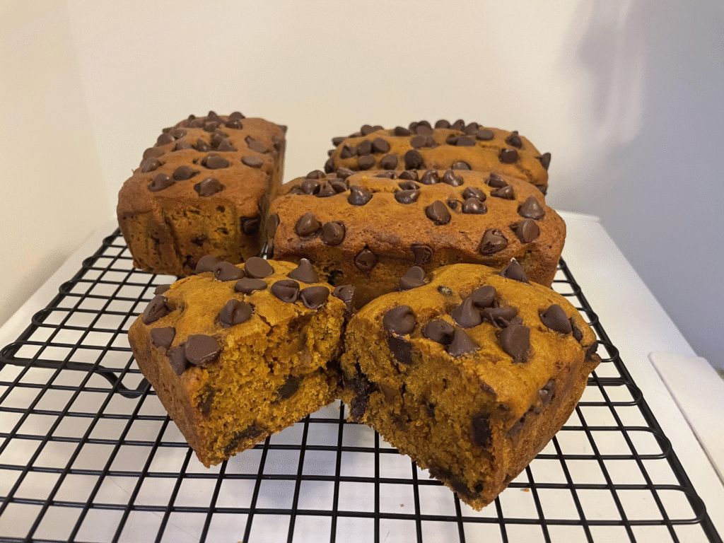 The texture is soft and tender, with just the right balance of pumpkin and spice. I especially love how the chocolate chips melt into little pockets of sweetness, creating the perfect contrast against the spiced pumpkin base.