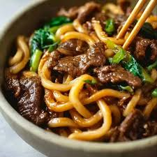 What I love most about it is the balance — the tender marinated beef, chewy udon, crisp vegetables, and that peppery sauce that coats everything just perfectly.
