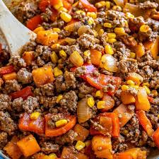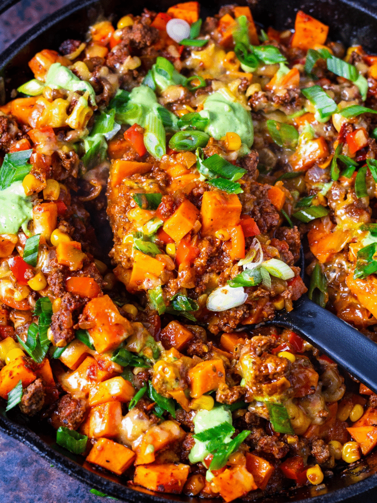 Southwest Ground Beef and Sweet Potato Skillet
